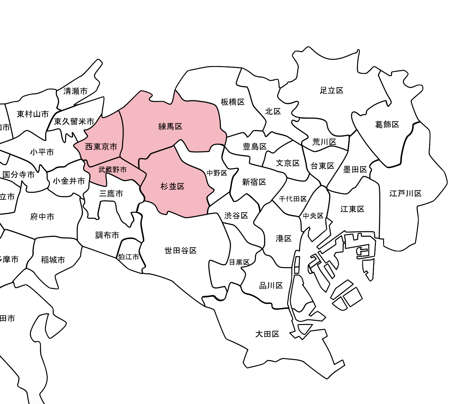 ◯対応エリアは練馬区・西東京市・杉並区・武蔵野市となります。